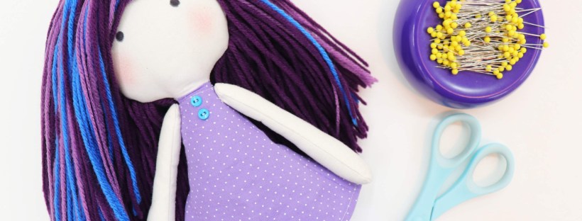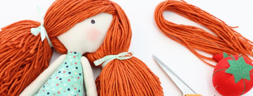 This project is a bit more time consuming than others and does require a bit of patience. It is probably a 5/10 in difficulty just for the amount of time needed to hand stitch the hair and for the exactness of seam allowance that is needed. When sewing plush projects, a small error in your seam allowance can make a big difference in the appearance of your doll. You also need to be comfortable slip stitching and working with small curves.