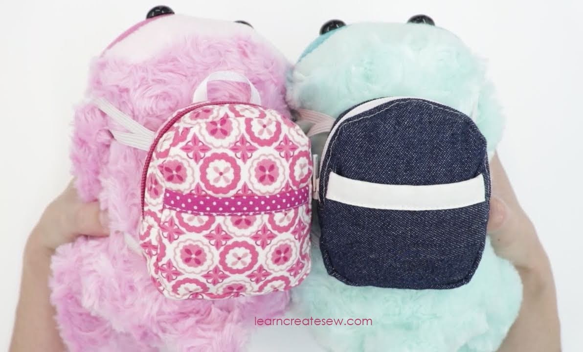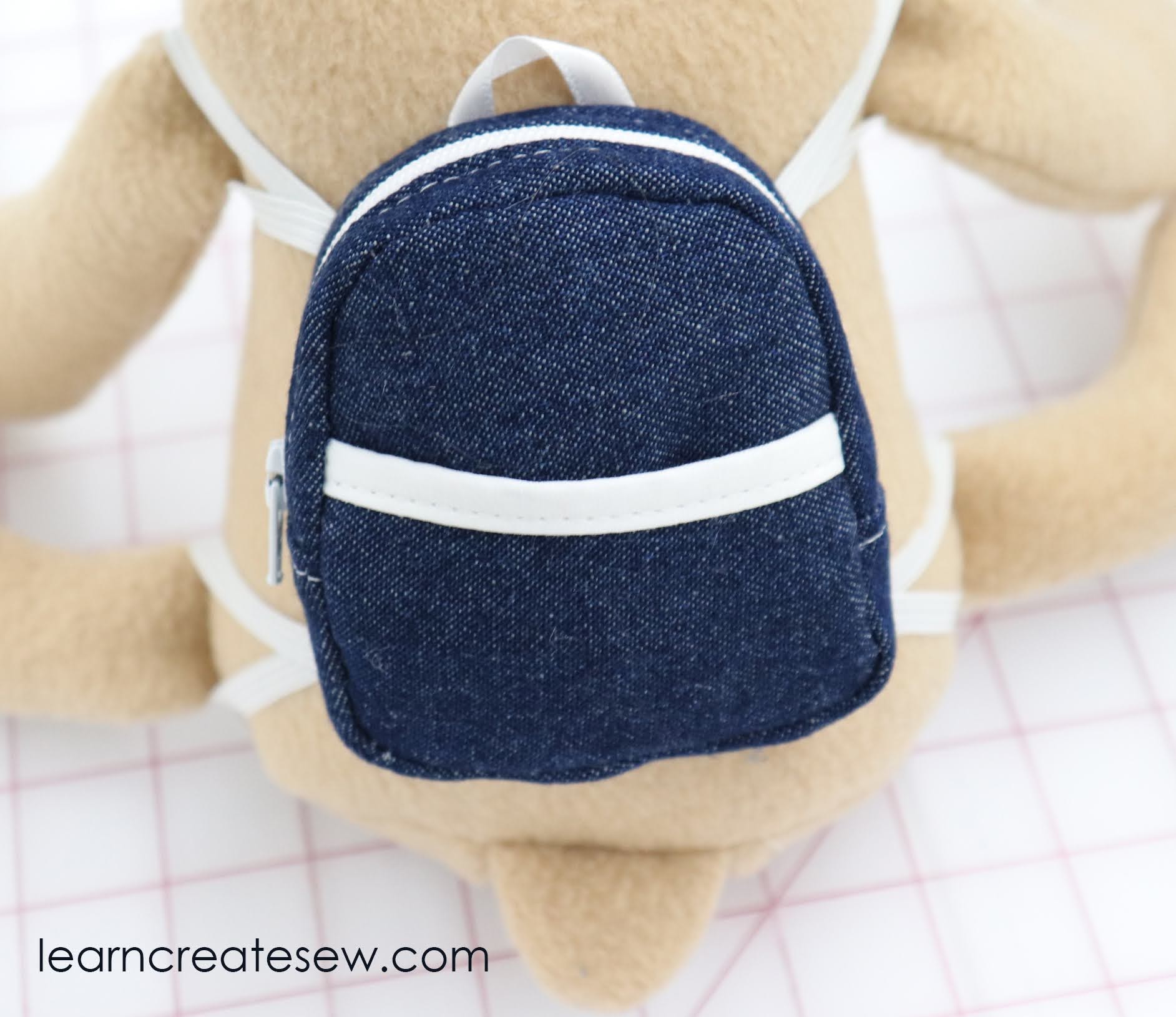 You can choose to make the backpack out of a single layer of fabric (like my denim example), or you can make it with lining (pink example). There are also two different options for the lower straps. Loops that go around each leg, or a single strap that goes around the belly.
