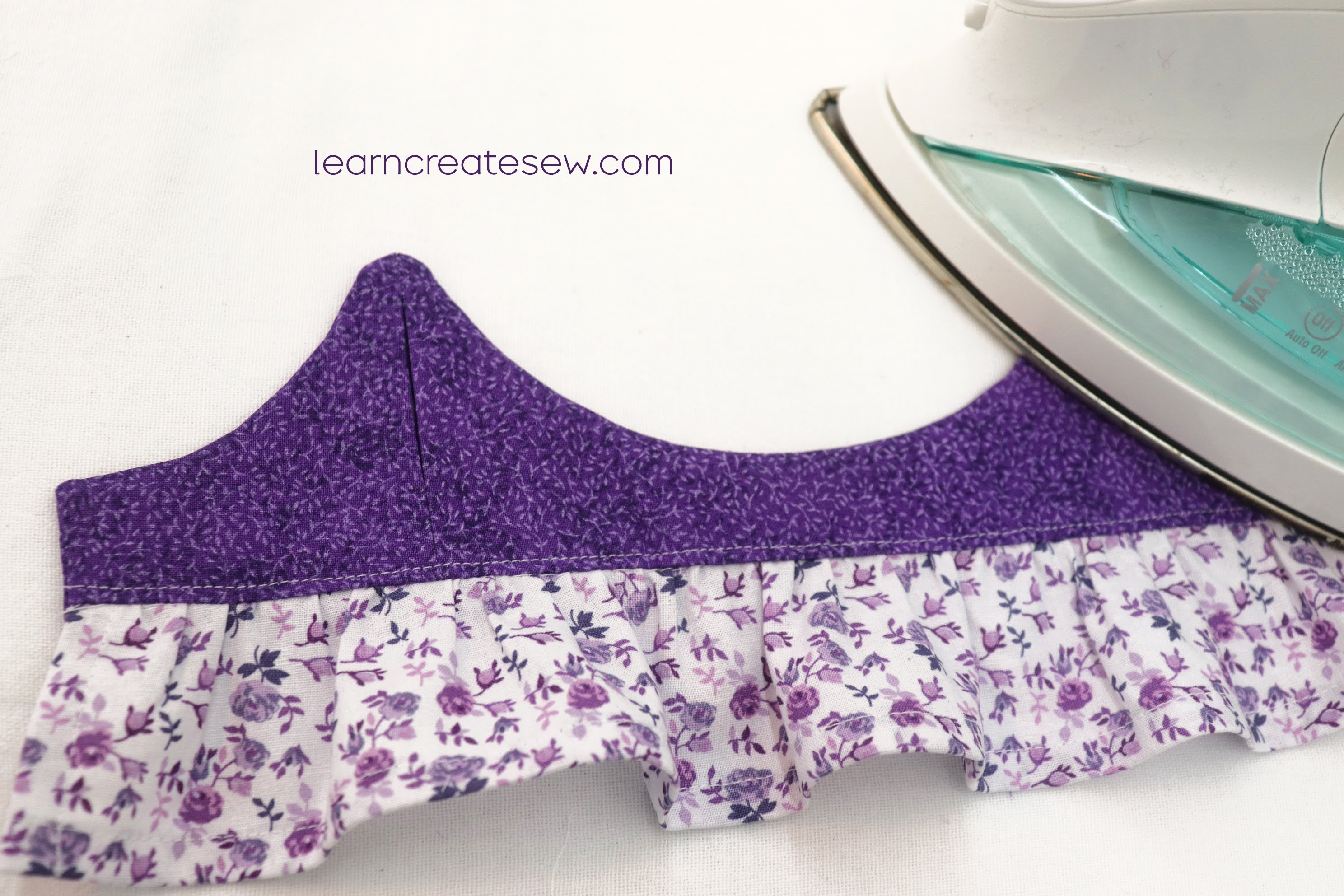 Place the dress right side up. (You can disregard the topstitching shown on the bodice in the photo. It’s not necessary in this step. We will get to that later.)