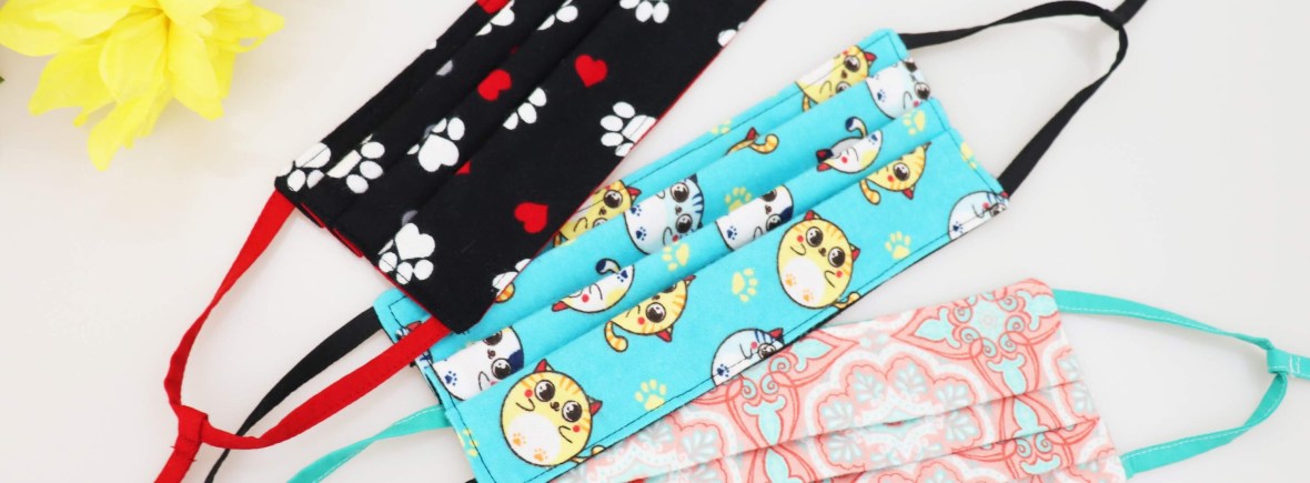 Also, personalized sizing may be helpful! If you plan to make many masks, I would make one as a test mask first. Than you can use that as a guide for sizing. Clip pieces of ribbon the the sides of the completed mask and have the intended wearer try it on. Adjust the ribbon to find the size of ear strap that is just right for you, and make a note of the length. (1/2 inch will be needed for the seam allowance.) Use the personalized measurements when making the mask for that wearer.