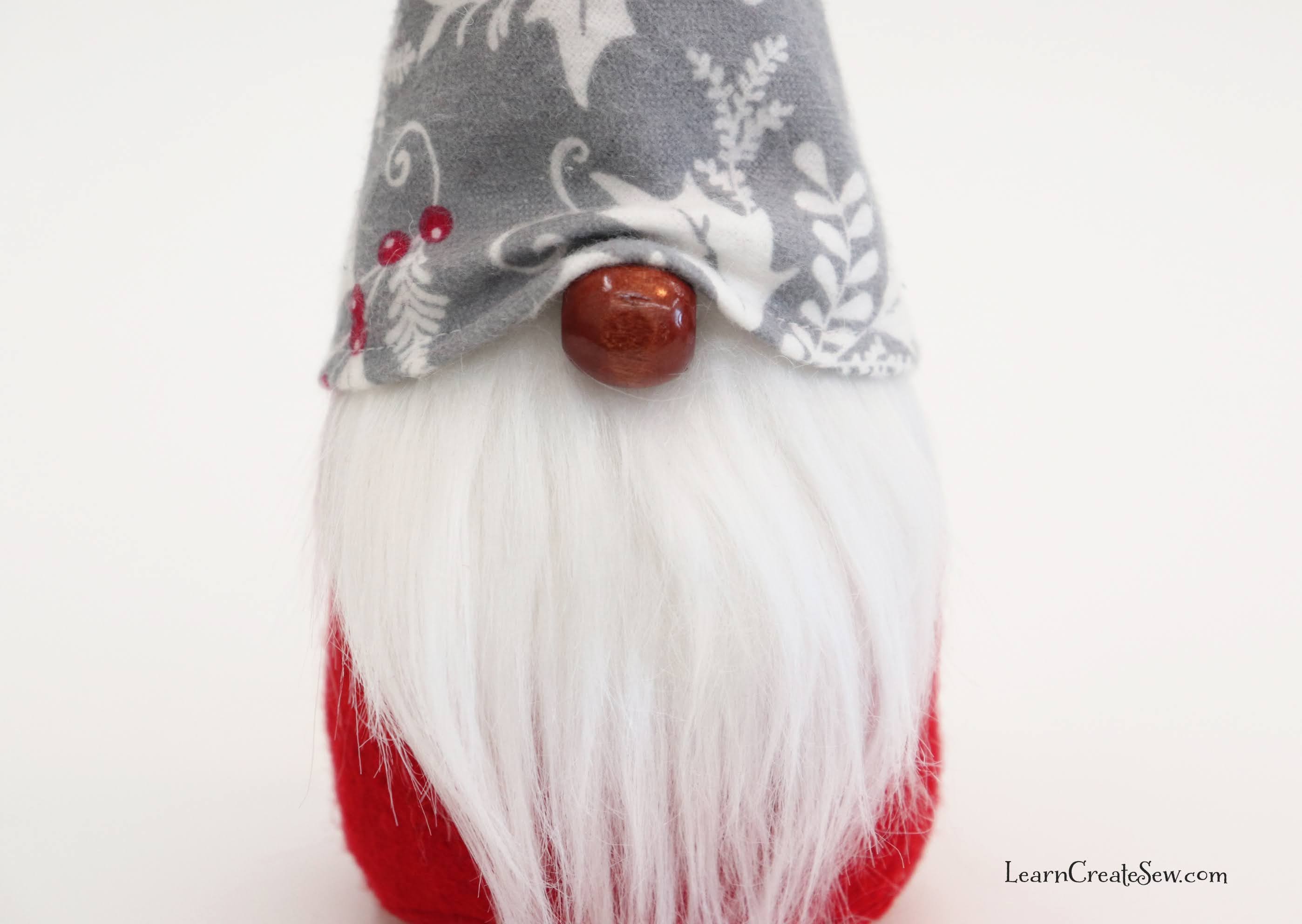 The beard is faux fur and gives the little gnomes a lot of character. I also picked up a mixed set of wooden beads at Walmart that work great as noses!