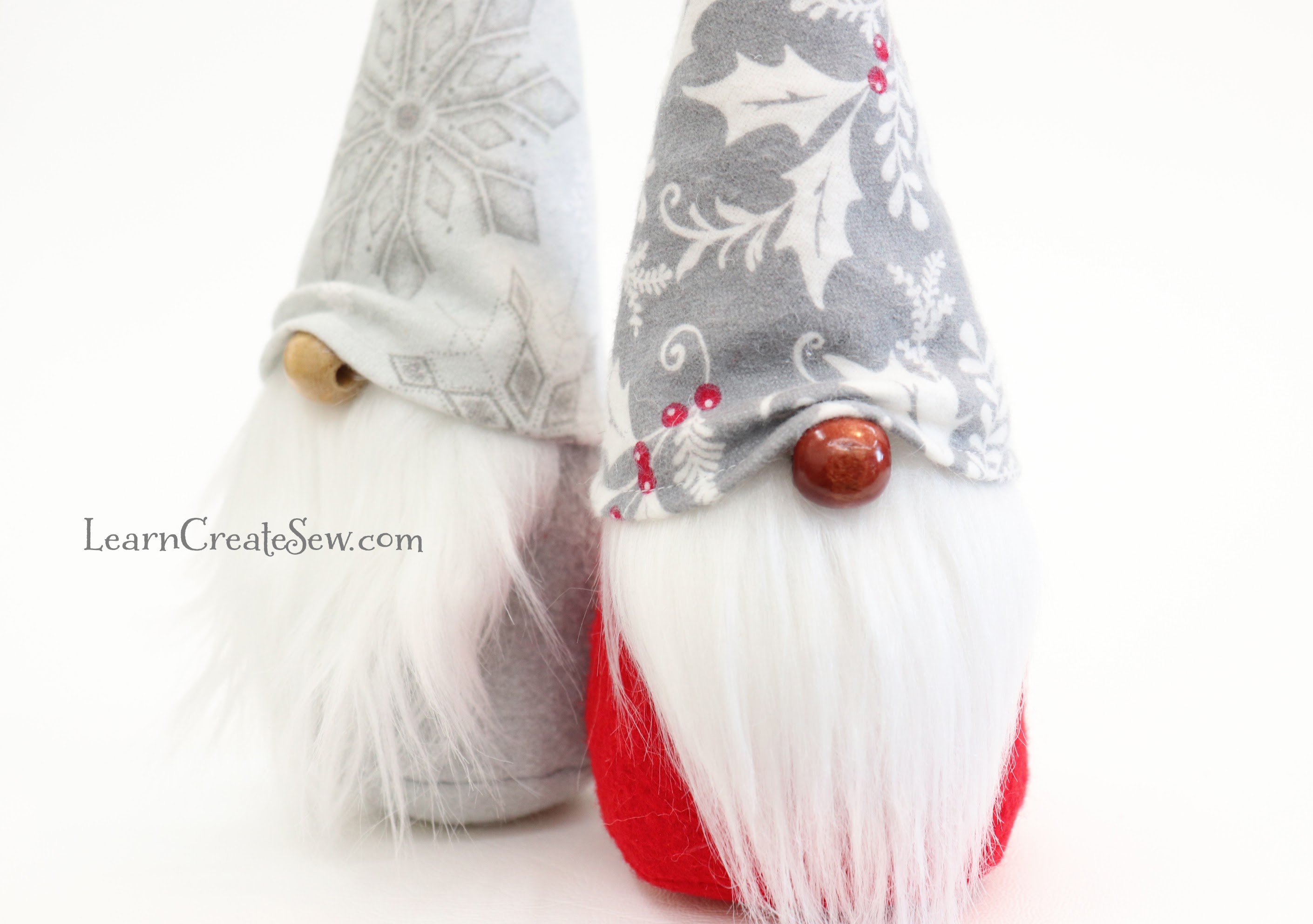 Each gnome is filled with polyfil and poly pellets to weigh them down.